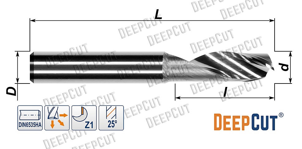 Фрезы по металлу концевые твердосплавные 1-зубые Deepcut серия AL-F1 подходят для фрезерования заготовок из алюминиевых сплавов и цветных металлов.