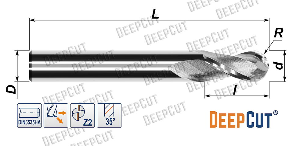 Фрезы по металлу сферические твердосплавные 2-зубые Deepcut серия ALB-F2 подходят для фрезерования заготовок из алюминиевых сплавов и цветных металлов.