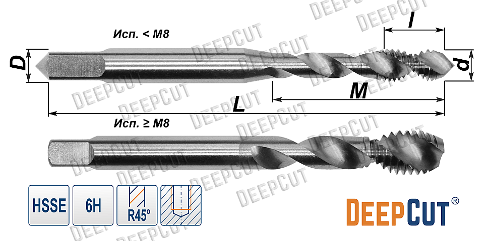 | M5x0,8 HSS-E 6H без покрытия AL | 5 | 0.8 | 9 | 64 | 4.5 | 410 ₽ |
